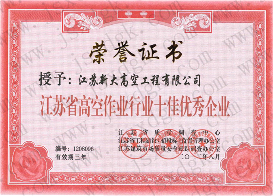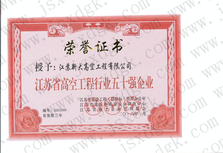 江蘇省高空行業(yè)五十強(qiáng)行業(yè)證書(shū)